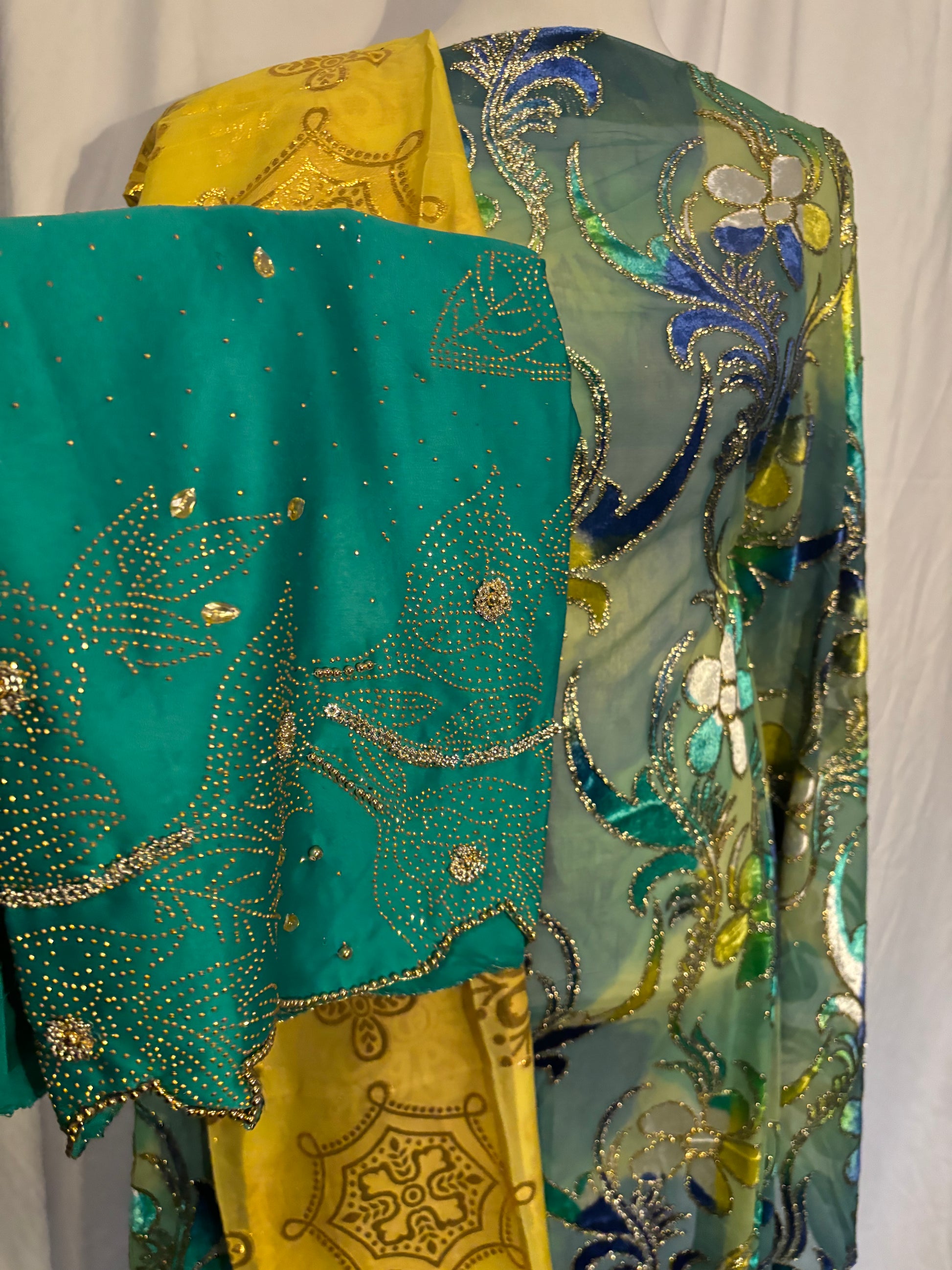 Our ultra Luxurious Sequin Dirac is comfortable to wear. The fabric is soft and shimmering chiffon. This gorgeous Dirac set is an intricate patchwork of mixed colors and is made ready to dazzle.